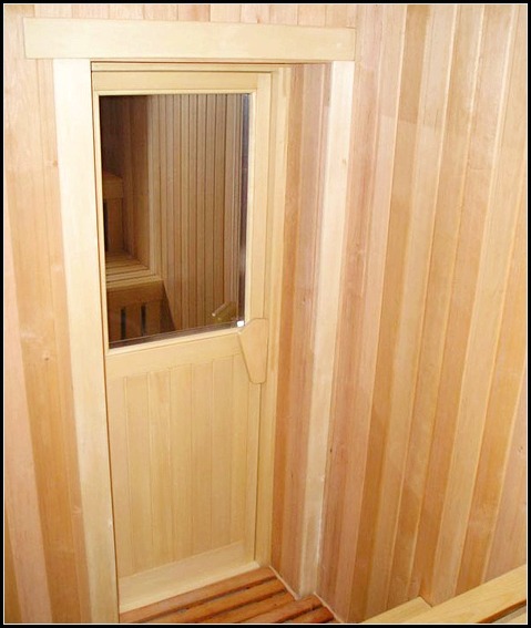 Как отмечалось ранее, для дверей бани можно использовать как стекло, так и дерево. Стекло должно быть определенного типа, способное выдержать высокие температуры. Но наилучшим материалом для дверей бани по-прежнему остается древесина. И причин тому несколько. Во-первых, при высоких температурах дерево выделяет полезные для здоровья вещества. Во-вторых, древесина общедоступна, легко и просто обрабатывается, что позволяет изготовить двери самостоятельно.