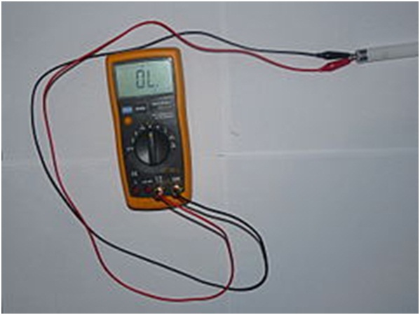 Как проверить целостность вольфрамовой нити? Очень просто, необходимо взять обычный тестер, которым можно измерить сопротивление проводника и прикоснуться к выводным концам лампы щупами.