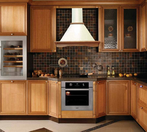 4. Угловой вариант вытяжки на кухню.