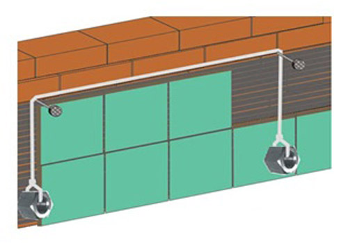 Плиты соединяются лишь на вертикальных и горизонтальных элементах, а не между ними (как полагают многие). Перед установкой места крепления отмечаются на стене, полу и потолке, вертикальность стоек контролируется посредством отвеса и линейки.