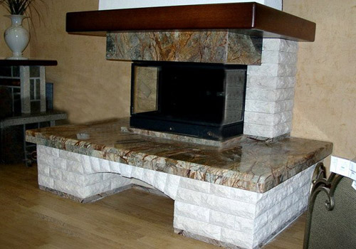 При наличии специализированного оборудования можно использовать для работы гранит или мрамор, а вот если такового не наблюдается, то выходом для ценителей даров натуры станет бутовый камень, известняк, ракушечник. Для крепления используют плиточный клей или мастику. После облицовки камни покрывают лаком, что не только улучшает внешний вид, но и облегчает уход за поверхностью.