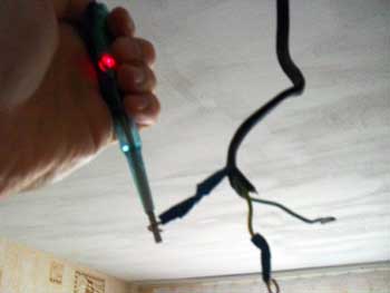 При любом ремонте электропроводки необходимо убедится в отсутствии фазы. Помним два провода, один фаза – бьется и ноль – не бьется. Для того что бы определить «кто из них кто» и нужна индикаторная отвертка. Вставляем в розетку или прикасаемся к проводнику, если светится – фаза, нет – ноль. Это важно в случае подключения осветительных приборов и выключателей к ним. На выключатель должна попадать фаза, так же на центральный контакт патрона для лампы должен приходить плюс.