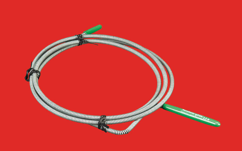 Также для прочистки сливных систем широко применяется стальной трос, который имеет диаметр 4 мм, один конец его оборудован ручкой для упрощения работы, а другой имеет ершик или щетку с жесткой щетиной. Приобрести его не составит труда, так как он продается в любом хозяйственном магазине. При покупке стального троса нужно учесть его длину.