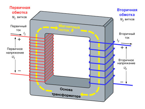 Как уже отмечалось, принцип работы сварочного трансформатора заключается в понижении напряжения и повышении силы тока. В большинстве случаев устройство сварочного трансформатора довольно простое. Он состоит из металлического сердечника, двух обмоток – первичной и вторичной. На представленном ниже фото изображено устройство сварочного трансформатора.