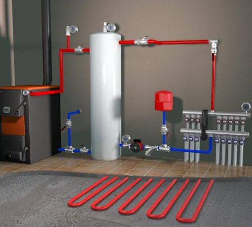 Монтаж циркуляционного насоса в систему отопления осуществляется на обратном течении теплоносителя вблизи отопительного котла. Таким образом, удается снизить температуру теплового носителя, который проходит через оборудование, и срок его службы значительно увеличивается.