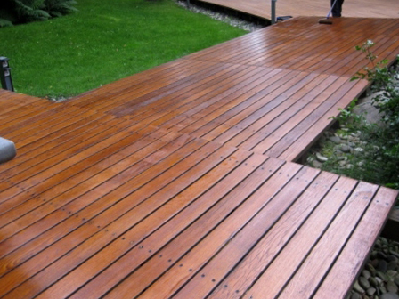 Среди лакокрасочных материалов, предназначенных для обработки уличных деревянных террас, с недавних пор лидерство удерживает масло для террас, цена которого соответствует его качеству. Неопытные мастера задаются вопросом: « Зачем пропитывать древесину маслом, если можно по старинке покрыть лаком?» Однако для лака характерен существенный недостаток – образование прочной воздухонепроницаемой пленки, которая со временем истирается, обнажая древесину для неблагоприятных разрушающих факторов. В отличие от остальных лакокрасочных материалов (прежде всего, лаков и красок), террасное масло не создает на поверхности древесины прочную пленку, нарушающую воздухообмен деревянной поверхности. Несмотря на это, оно глубоко пропитывает древесину и обеспечивает надежную защиту древесины изнутри, оставляя ее поры открытыми, что является залогом эффективного воздухообмена. Эффективность террасного масла обусловлена тем, что они заполняет любые, неизбежно образующиеся трещины и мелкие дефекты древесины, придавая ей водоотталкивающие свойства и в разы повышая ее износостойкость. Его способность к полимеризации (окислению под воздействием воздуха) обеспечивает надежную защиту древесины даже от морской воды.