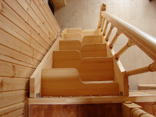 доступность – можно выбрать самые недорогие породы, например, сосну, и это обойдется намного дешевле по стоимости материала и работ, чем кованая или стеклянная лестница;