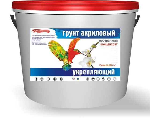 глубоко-проникающая. Подходит для слабых пористых стен из гипсокартона, пеноблока, кирпичных или оштукатуренных. Она, снижая пористость, повышает адгезию и способствует сокращению расхода краски;