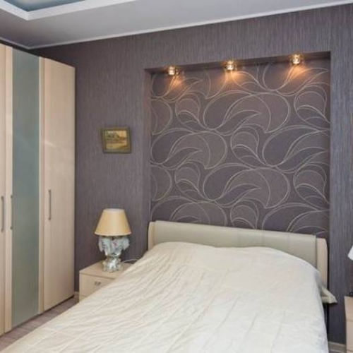 Как поклеить обои в спальне двух видов. В ней чаще всего декорируется зона, где размещается изголовье кровати.