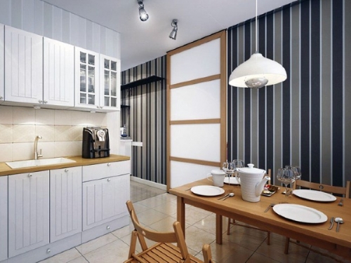 Обои в полоску, по сути, являются разновидностью предыдущего варианта, однако , в виду стилистической нейтральности полоски, «полосатые» обои могут стать выгодным дополнением не только современного, но и классического интерьера. Полоска может быть как вертикальной, так и горизонтальной, узкой или широкой, а также характеризоваться чередованием узких и широких элементов на одном полотне. Полоску можно комбинировать с геометрическим или классическим рисунком;