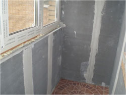 В-третьих, выполнить обработку стен и брусков каркаса специальной пропиткой от грибков и плесени. Эта мера является жесткой необходимостью, так как балкон или лоджия в большей мере подвержены атмосферным воздействиям, чем жилые помещения. И древесина может довольно быстро прийти в негодность. После обработки пропиткой дерево и стены становятся защищенными от этой напасти. Но срок защиты ограничен, поэтому придется раз в 10 – 15 лет выполнять небольшой ремонт и повторную обработку. Существует еще один вариант защиты от грибка и плесени. Он заключается в обработке стен ПВА шпаклевкой. Она создает влагонепроницаемый барьер. Но это является также и недостатком. Так как стены перестают «дышать», и вся влага скапливается внутри конструкции и может привести к появлению грибка. После обработки защитным составом даем поверхности высохнуть и после этого переходим к дальнейшим работам.