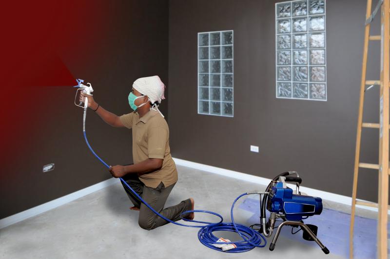 Использование распылителя считается одним из наименее трудоемких способов нанесения текстурной краски. Подготовив чистый краскопульт и держа его перпендикулярно окрашиваемой поверхности, на предварительно очищенную и сухую стену распыляют краску в два слоя, первый из которых наносится слева направо, а второй справа налево. Полное высыхание поверхности, окрашенной текстурной краской, осуществляется в течение 24 часов.