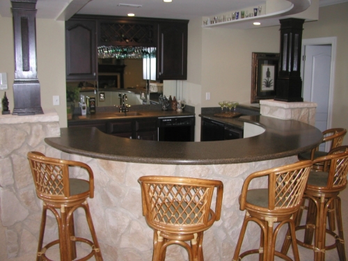 Чтобы сделать собственноручно барную стойку, подойдет ДСП, потому что камень все-таки является уделом профессионалов. А ДСП с использованием специальных декоративных пленок ни сколько не будет уступать камню по красоте, зато по воплощению дизайнерских задумок и решений древесно-стружечная плита камень обходит во много раз.