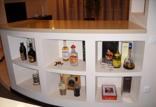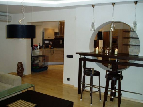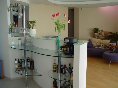 Таким образом, приобретает популярность украшение интерьеров конструкциями, которые называют барными стойками. Если раньше барные стойки устанавливались исключительно в помещениях общественного питания, то современная барная стойка выступает типовым элементом мебельной обстановки городской квартиры или частного дома, который предназначается для украшения интерьера и служит, кроме того, для строгого разделения жилых пространств в небольших помещениях.