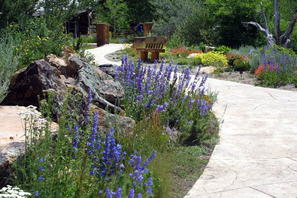 Для серединных участков прекрасно подходят неприхотливые мелкие кустарники – разного вида очитки, солнцецвет монетчатый. Можно обратиться к луковичным растениям, гейхерам, плотным кустикам армерии, альпийской астре, осенне-цветущему безвременнику.