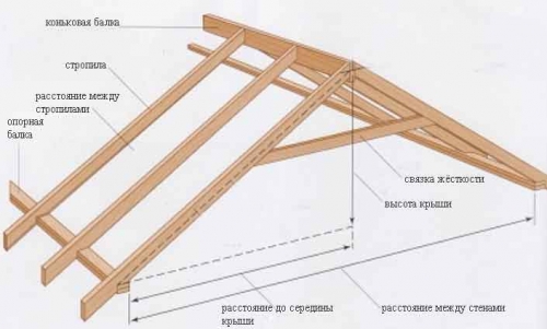 И последнее, что необходимо сделать для завершения каркаса, это поставить брусья для крыши. Для этого сбиваем два бруска между собой на угол (в виде незавершенного треугольника, основанием которого будет одна из стен), а свободные концы укрепляем на верхних брусьях стен. Таких треугольников может быть от 2 до 4 штук. В обязательном порядке по одному устанавливается на противоположных стенах домика, напротив друг друга, и один или два могут быть установлены между ними, все зависит от размеров сооружения. Также данные бруски необходимо закрепить уголками.