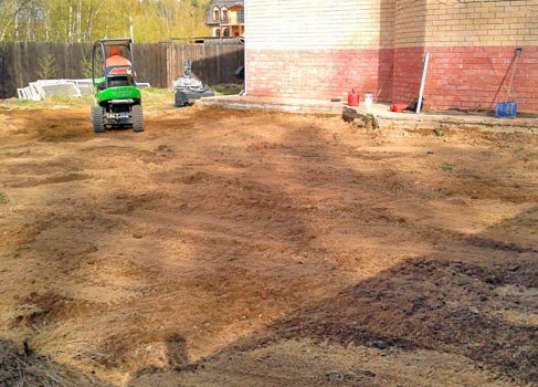 Сначала участок очищают. Убирают весь мусор, выкорчевывают деревья и кустарники. Дальше начинается ложный и трудоемкий процесс выравнивания и очищения участка от сорняков.