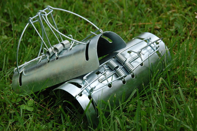 Ловушка Сломона также поможет вам избавиться от кротов. Это цилиндр, изготовленный из любого материала – жести, дерева или цинкованного железа. Диаметр имеет ловушка такой, что помещается в кротовину. К концам ловушки пристроены висячие дверцы. Они открываются исключительно внутрь. Крот попадает в ловушку, дверца закрывается, а вот обратного хода нет.