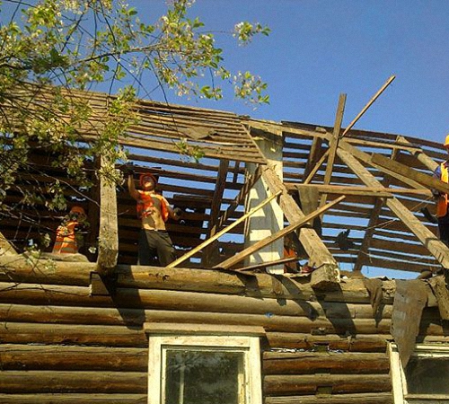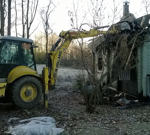 При наличии возле дома пристроек, они разбираются в первую очередь. После выполнения всех работ у вас должны остаться исключительно стены дома и его фундамент. В данном случае, руководствуйтесь собственными предпочтениями разбирая дом самостоятельно или привлекая крупногабаритную технику.