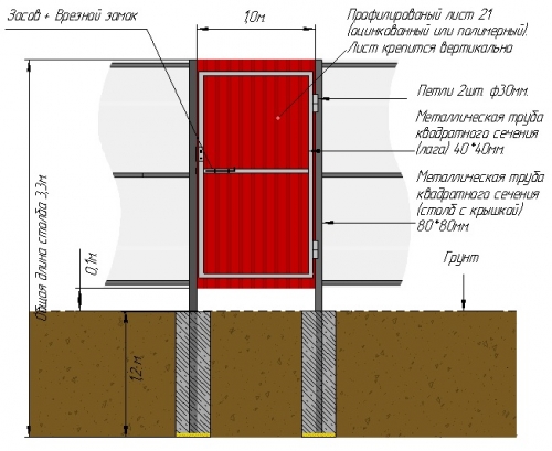 Требованиям к дачной калитке в полной мере отвечает ограда из профлиста. Подготовить чертеж и собрать по нему калитку получится собственноручно.
