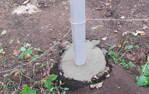 Навешивание готового полотна на опорные стойки выполняется после полного застывания фундамента.