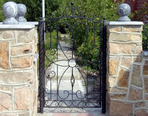 Кованые изделия, наоборот, отличаются изысканностью и эксклюзивностью. Но за презентабельность конструкции придется заплатить относительно большую стоимость. Кованые элементы сильно утяжеляют калитку. Некоторых дачников настораживает прозрачность такой ограды, однако этот недостаток легко устранить, установив «шторку» из поликарбоната.