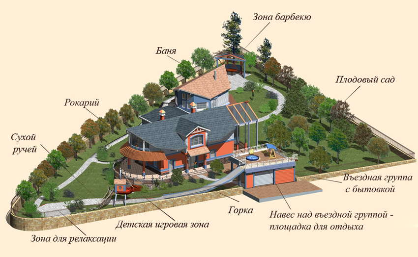 Приобретая загородный участок, его владельцы вынуждены искать ответы на ряд вопросов, только после решения которых территория станет пригодной к рациональному использованию. Среди них и принципы расположения дома и хозяйственных построек на участке, и посадка плодовых и декоративных растений, и возможности размещения бани и бассейна. Грамотно ответив на эти вопросы и рационально распорядившись доступной площадью, новоиспеченные обладатели дачных участков зачастую бывают удивлены, что даже на небольшой территории можно разместить все задуманные функциональные и декоративные элементы. Чтобы правильно распланировать территорию, что станет первым шагом на пути к созданию участка вашей мечты, прислушайтесь, воспользуйтесь несложными советами, предложенными в статье, и добавьте свое понимание о красоте и комфорте.